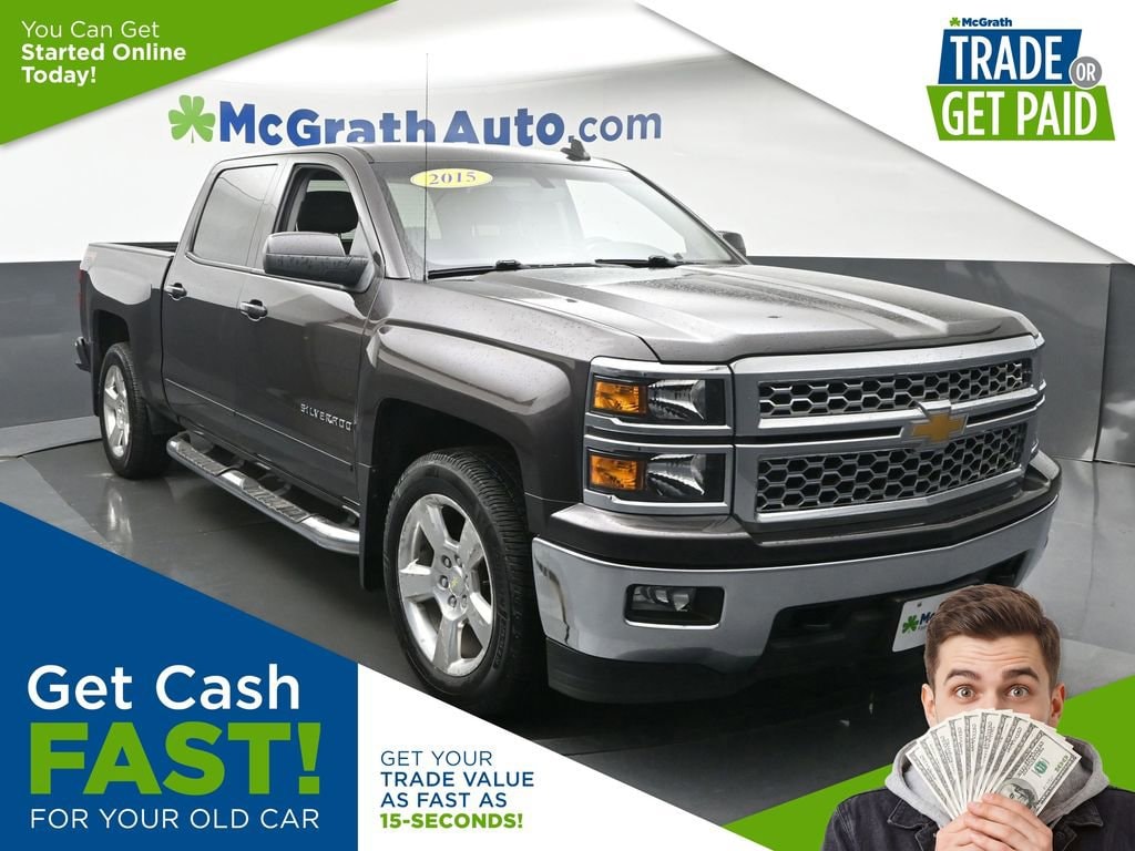 6-Speed Automatic Electronic with Overdrive, 4WD, Black Cloth. Odometer is 20853 miles below market average! CARFAX One-Owner.2015 Chevrolet Silverado 1500 LT LT1 EcoTec3 5.3L V8 4WDWelcome to McGrath Auto, your destination for industry leading automotive experiences. We’re proud to deliver unmatched quality and service. With over 13,000 5-star Google reviews, our customers’ trust and satisfaction drive everything we do. Whether you’re buying, servicing, or building your fleet, experience why McGrath Auto is the top choice for all your automotive needs! We’ve got everything from tough trucks to fuel-sipping commuters and adventure-ready SUVs. Our vehicles go through a rigorous inspection process, and we offer multiple layers of certification based on the vehicle's age, mileage and inspection results. Whether you’re shopping for a brand-new ride or a budget-friendly pre-owned gem, we’re here to make the process easy, fun, and stress-free.Freight fees (not required by law) are included in advertised pricing. Tax, title, license, tags, electronic titling fees, a $180 documentation fee, and any other applicable dealer fees are not included and are the responsibility of the purchaser. Some in-stock vehicles may include a $1,295 Clear Guard Protection package that is pre-installed on select vehicles. MSRP (Manufacturer’s Suggested Retail Price) is provided for informational purposes only and is not the dealer’s advertised or selling price. Advertised pricing complies with manufacturer guidelines and may include all applicable rebates and incentives assigned to the dealer. Additional discounts or savings may be available please contact the dealership to confirm eligibility. All prices, payments, specifications, features, and availability are subject to change without notice and prior sale. Example payments are estimates for illustrative purposes only; actual terms vary based on credit approval, and not all buyers will qualify. Certain factory incentives may not be combined with promotional APR offers. All offers may require financing or leasing through approved lenders. While every reasonable effort is made to ensure accuracy, errors may occur. Please verify all information, including pricing, equipment, and availability, with a dealership representative prior to purchase. Some in-stock vehicles may include a $1,295 Clear Guard Protection package. Fuel economy and driving range figures are EPA estimates; actual mileage and range may vary. The dealer is not responsible for the accuracy of information provided by third-party websites or advertisements not generated by the dealership. By submitting your phone number online, you consent to receive occasional SMS or voice communications regarding products and promotions; standard messaging rates may apply.