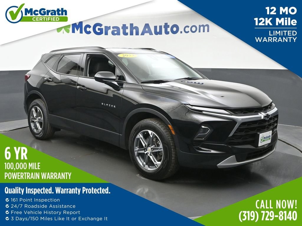 AWD. 22/27 City/Highway MPG Odometer is 1863 miles below market average! CARFAX One-Owner.Certification Program Details: McGrath Certified Benefits: * Free Vehicle History Report * 106 Point Full Vehicle Condition Inspection * Like it or Exchange it! Three Day Policy 2023 Chevrolet Blazer LT 2.0L Turbocharged AWDWelcome to McGrath Auto, your destination for industry leading automotive experiences. We’re proud to deliver unmatched quality and service. With over 13,000 5-star Google reviews, our customers’ trust and satisfaction drive everything we do. Whether you’re buying, servicing, or building your fleet, experience why McGrath Auto is the top choice for all your automotive needs! We’ve got everything from tough trucks to fuel-sipping commuters and adventure-ready SUVs. Our vehicles go through a rigorous inspection process, and we offer multiple layers of certification based on the vehicle's age, mileage and inspection results. Whether you’re shopping for a brand-new ride or a budget-friendly pre-owned gem, we’re here to make the process easy, fun, and stress-free.Freight fees (not required by law) are included in advertised pricing. Tax, title, license, tags, electronic titling fees, a $180 documentation fee, and any other applicable dealer fees are not included and are the responsibility of the purchaser. Some in-stock vehicles may include a $1,295 Clear Guard Protection package that is pre-installed on select vehicles. MSRP (Manufacturer’s Suggested Retail Price) is provided for informational purposes only and is not the dealer’s advertised or selling price. Advertised pricing complies with manufacturer guidelines and may include all applicable rebates and incentives assigned to the dealer. Additional discounts or savings may be available please contact the dealership to confirm eligibility. All prices, payments, specifications, features, and availability are subject to change without notice and prior sale. Example payments are estimates for illustrative purposes only; actual terms vary based on credit approval, and not all buyers will qualify. Certain factory incentives may not be combined with promotional APR offers. All offers may require financing or leasing through approved lenders. While every reasonable effort is made to ensure accuracy, errors may occur. Please verify all information, including pricing, equipment, and availability, with a dealership representative prior to purchase. Some in-stock vehicles may include a $1,295 Clear Guard Protection package. Fuel economy and driving range figures are EPA estimates; actual mileage and range may vary. The dealer is not responsible for the accuracy of information provided by third-party websites or advertisements not generated by the dealership. By submitting your phone number online, you consent to receive occasional SMS or voice communications regarding products and promotions; standard messaging rates may apply.