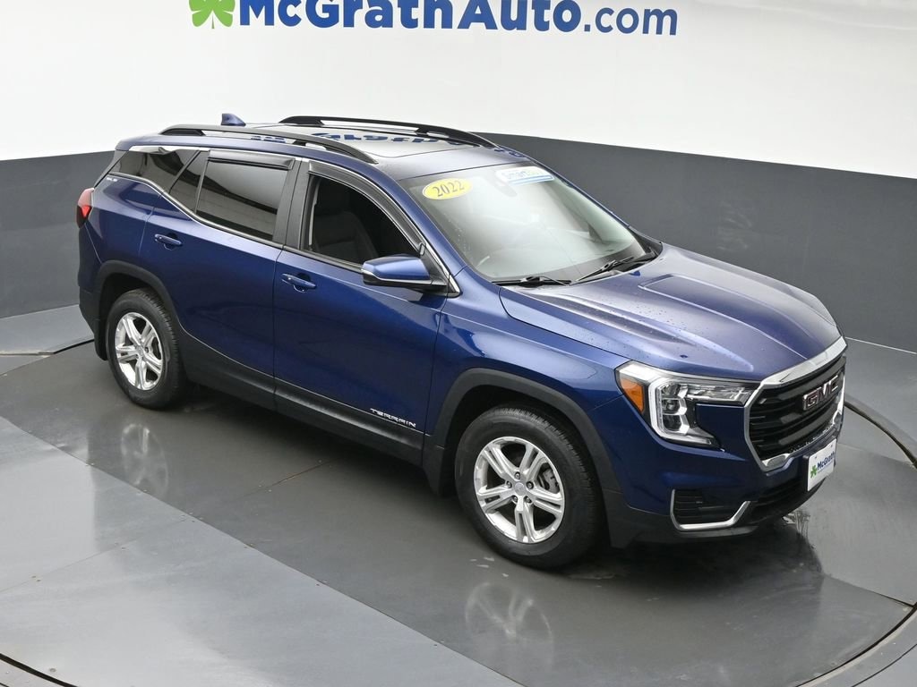 Experience the Versatility and Refinement of the 2022 GMC Terrain SLEThis stunning 2022 GMC Terrain SLE offers a compelling blend of style, capability, and advanced technology. With its sleek exterior design, spacious interior, and impressive performance, this midsize SUV is poised to elevate your driving experience. 3 Years of OnStar & Connected Services Plan Sunroof, Skyscape Power with Power Sunscreen Driver Convenience Package Infotainment Package I GMC Pro Safety PlusMeticulously engineered to deliver exceptional utility, the Terrain SLE boasts a 1.5L DOHC engine paired with a smooth-shifting 9-speed automatic transmission and available All-Wheel Drive. With an EPA-estimated 25 city/28 highway MPG, this SUV offers impressive fuel efficiency without compromising on power and capability.Step inside the refined cabin and you'll be greeted by premium cloth seating, dual-zone automatic climate control, and a wealth of advanced technology features. The 8-inch GMC Infotainment System with navigation, 4.2-inch driver information display, and wireless Apple CarPlay/Android Auto connectivity keep you connected and entertained on the go.For added peace of mind, the Terrain SLE is equipped with the GMC Pro Safety Plus suite of advanced driver-assistance technologies. This comprehensive package includes features like Lane Change Alert with Side Blind Zone Alert, Rear Cross-Traffic Alert, Rear Park Assist, and Adaptive Cruise Control, ensuring you and your passengers arrive at your destination safely.This Terrain SLE is also a Certified Pre-Owned (CPO) vehicle, which means it has undergone a rigorous inspection and reconditioning process to meet the high standards set by GMC. With the added benefits of a comprehensive warranty and 24/7 roadside assistance, you can drive with confidence knowing your investment is protected.Discover the exceptional value and uncompromising quality of the 2022 GMC Terrain SLE. Experience the perfect blend of style, technology, and capability that will elevate your daily driving. Schedule a test drive today and let us demonstrate why this SUV is the perfect fit for your lifestyle.Prices may change at any time and are subject to availability and prior sale. Taxes, title, license fees, and a $180 documentation fee are not included. Pricing reflects all applicable rebates and incentives assigned to the dealer. Example payments are estimates; actual terms vary based on credit approval. APR and payment estimates apply to qualified buyers, not all buyers qualify for advertised rates. Factory cash incentives may not be combined with promotional APR. Fuel economy ratings and driving range figures are based on EPA estimates for new vehicles, and actual mileage and range may vary. Some in-stock vehicles may include a $1,295 Clear Guard Protection package By submitting your phone number online, you consent to occasional SMS or voice calls about our products and promotions; standard messaging rates may apply. Consult dealer for offer eligibility and other details. Factory MSRP is not the final advertised/asking price of the vehicle. Fuel economy figures are EPA estimates.
