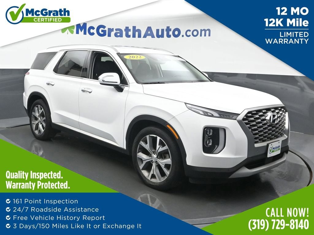 Odometer is 22114 miles below market average! CARFAX One-Owner.Certification Program Details: McGrath Certified Benefits: * Free Vehicle History Report * 106 Point Full Vehicle Condition Inspection * Like it or Exchange it! Three Day Policy 2022 Hyundai Palisade SEL V6 AWDWe're in the customer service business first, the car business second.- H.B. McGrath. Our goal is to offer our customers great vehicles at unmatched prices, but the car business isn't just about the product, it's about the people. Welcome to McGrath, your destination for award-winning automotive excellence! Wwe were voted CBJ's 2024 #1 Coolest Place to Work and winner of 2024 Best of the Best Auto Dealer, Auto Service, and Fleet Dealer. We’re proud to deliver unmatched quality and service. With over 11,000 5-star Google reviews, our customers’ trust and satisfaction drive everything we do. Whether you’re buying, servicing, or building your fleet, experience why McGrath is the top choice for all your automotive needs! If we aren't making our customers happy, we aren't in business. It's as simple as that, and we intend to deliver on the promise: Get More with McGrath.Prices may change at any time and are subject to availability and prior sale. Taxes, title, license fees, and a $180 documentation fee are not included. Pricing reflects all applicable rebates and incentives assigned to the dealer. Example payments are estimates; actual terms vary based on credit approval. APR and payment estimates apply to qualified buyers, not all buyers qualify for advertised rates. Factory cash incentives may not be combined with promotional APR. Fuel economy ratings and driving range figures are based on EPA estimates for new vehicles, and actual mileage and range may vary. Some in-stock vehicles may include a $1,295 Clear Guard Protection package By submitting your phone number online, you consent to occasional SMS or voice calls about our products and promotions; standard messaging rates may apply. Consult dealer for offer eligibility and other details. Factory MSRP is not the final advertised/asking price of the vehicle. Fuel economy figures are official EPA estimates and clearly labeled as such.