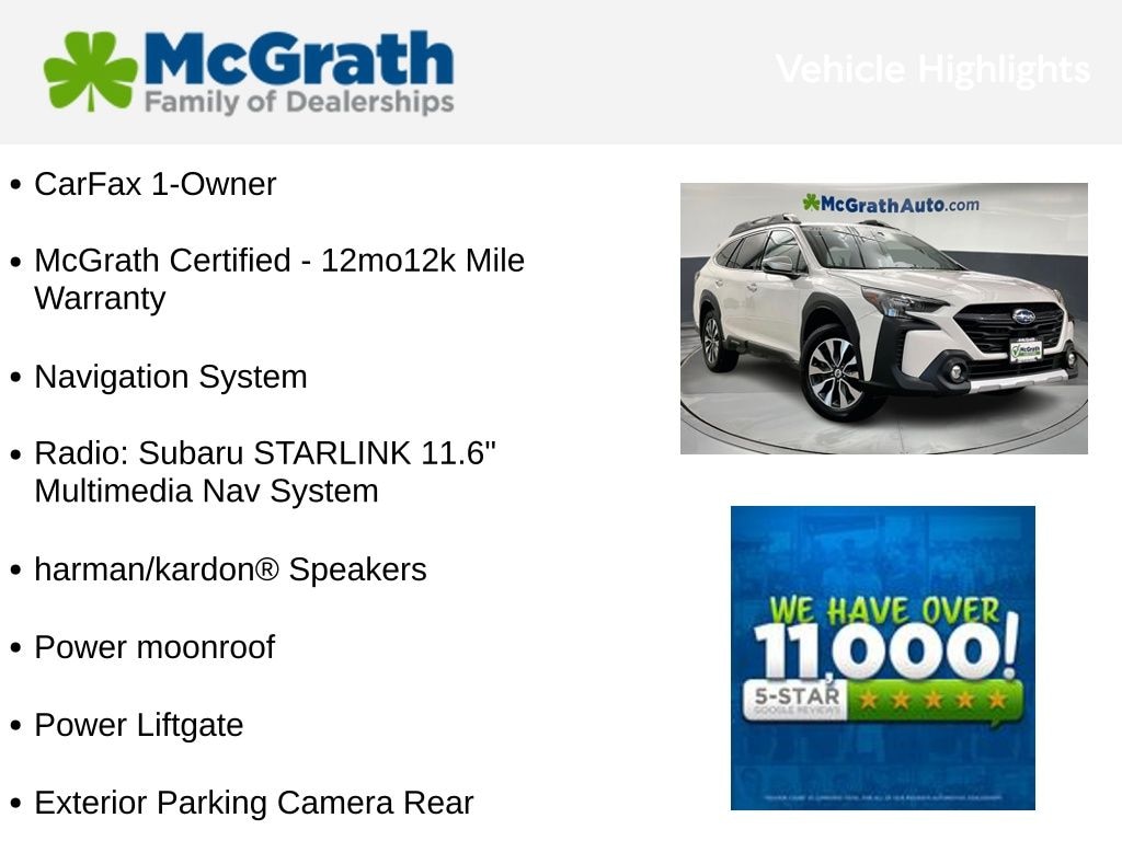 This 2023 Subaru Outback Touring is a McGrath Certified pre-owned vehicle, meaning it has undergone a rigorous inspection and comes with a 12-month/12,000-mile warranty. You can trust that this SUV has been meticulously maintained and is ready to provide you with years of reliable service.