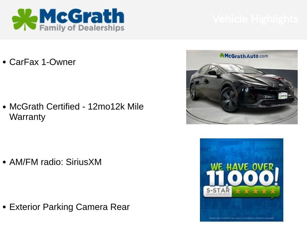 Certified by the McGrath team, this 2024 Toyota Prius LE has undergone a rigorous inspection and comes with a 12-month/12,000-mile warranty. You can trust that this vehicle has been meticulously maintained and is ready to provide you with years of reliable, efficient, and enjoyable driving.