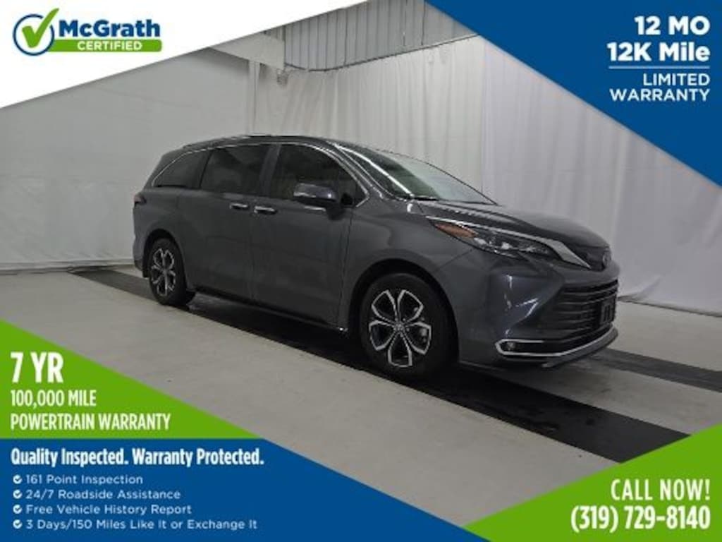 2025 Toyota Sienna Platinum 7 Passenger Certification Program Details: McGrath Certified Benefits: * Free Vehicle History Report * 106 Point Full Vehicle Condition Inspection * "Like it or Exchange it!" Three Day Policy